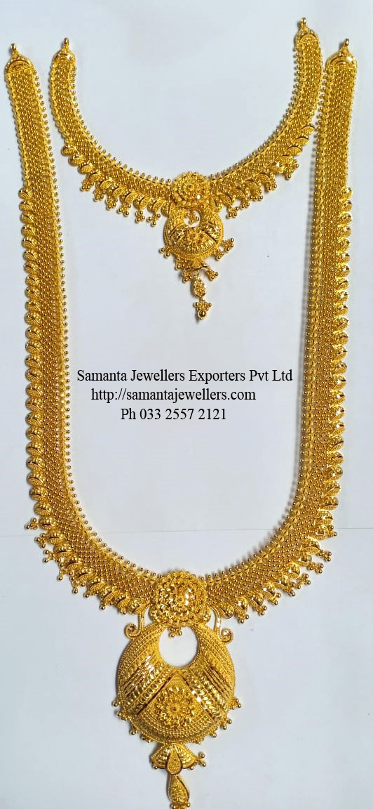 Latest Gold Ranihaar Long Necklace Designs , gold Jewelery manufacturer kolkata Samanta Jewellers, Bridal Gold Longset Uset Haram Guluband Uset design